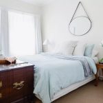 It’s easy to create a cozy and lived-in space by preserving and highlighting the original features of a room. The minimalistic Stockholm bedroom by Fabulous Frank highlights the rustic beauty and charm of the original brick wall. It only adds the biggest bed possible to fit the space. Simple linens are used in white, gray, or blue. A midcentury-modern pendant adds soft lighting, while a collection black metal candlesticks placed on either side of bed is a romantic alternative for bedside lamps.